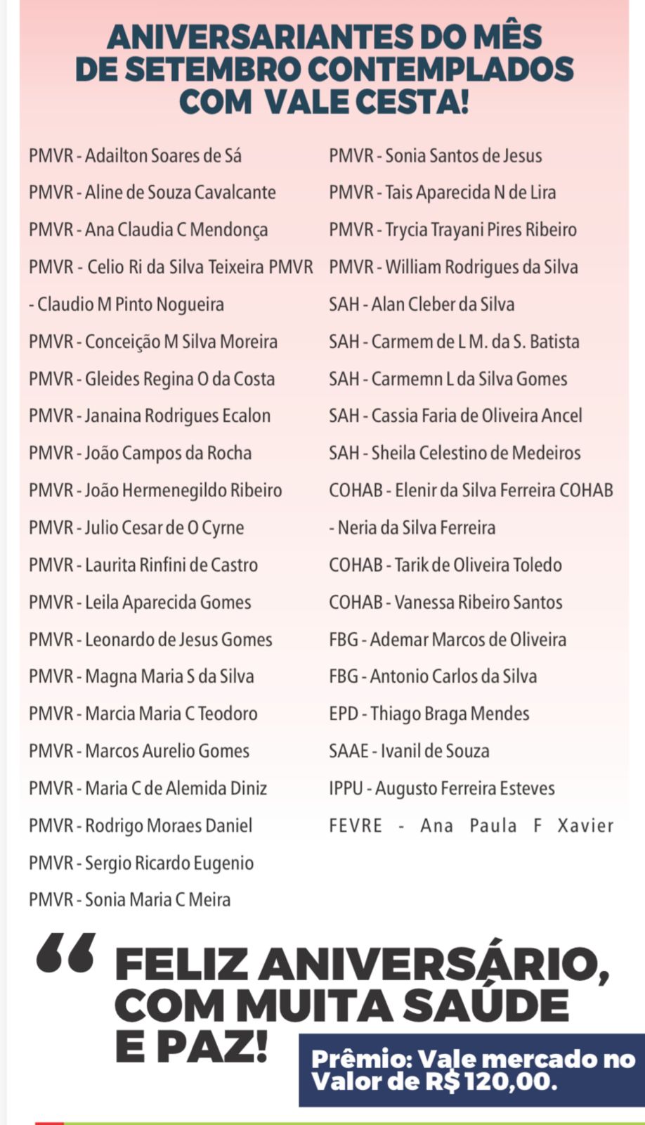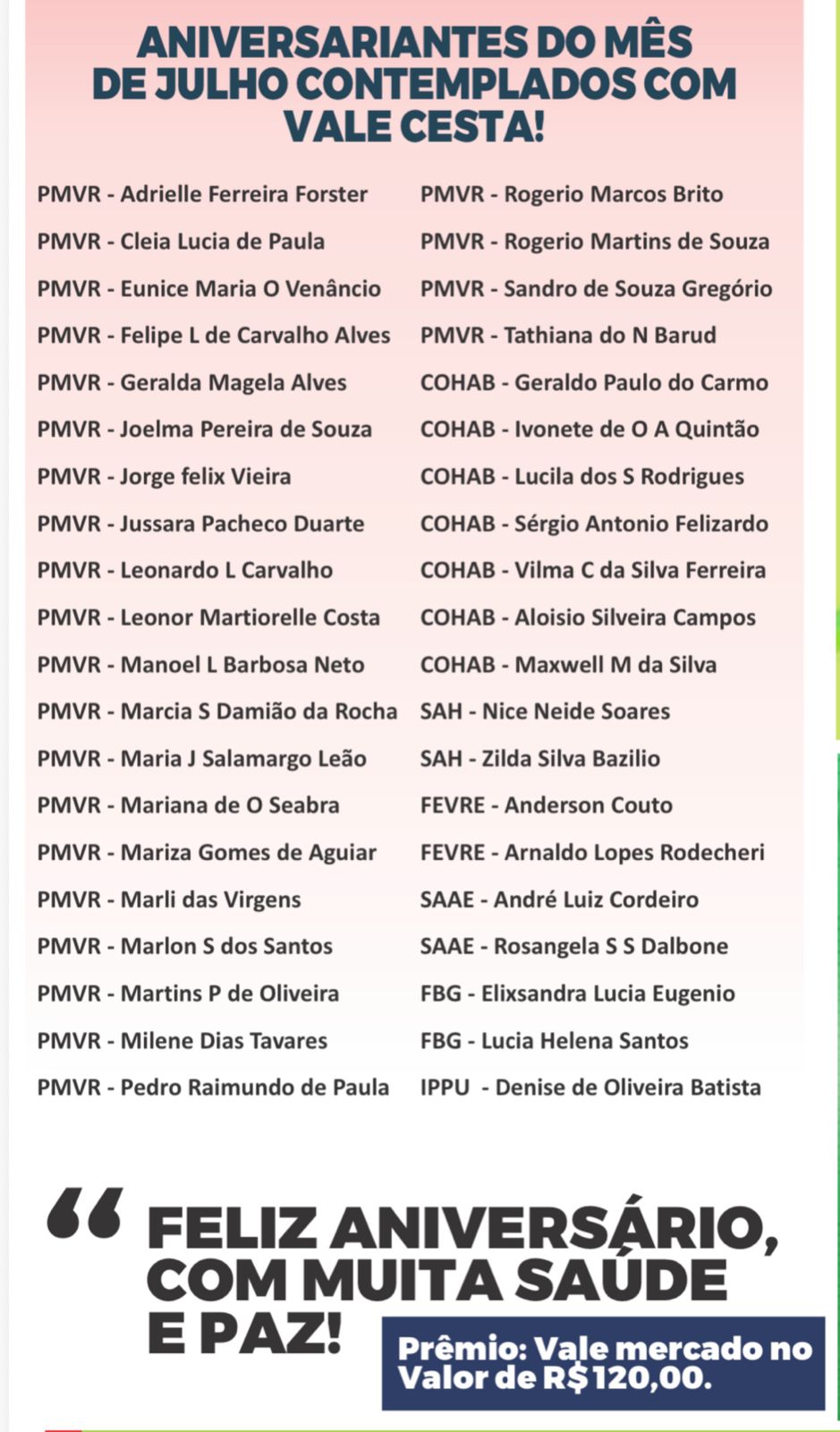 Sorteados devem entrar em contato com a Equipe da ASVRE.